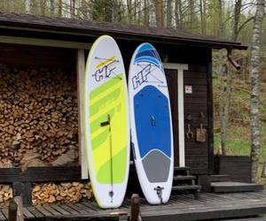На базе отдыха «Хутор Салокюля» можно не просто любоваться природой Карелии, но и заниматься спортом, а именно кататься на сап-борде. Это и отличный отдых, и хорошая физическая нагрузка.