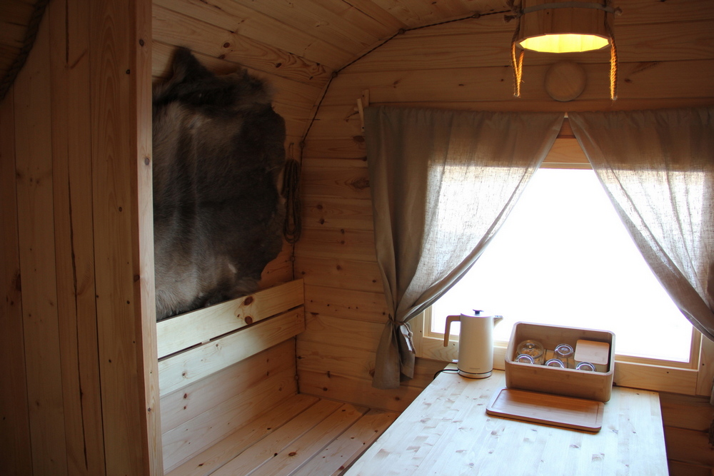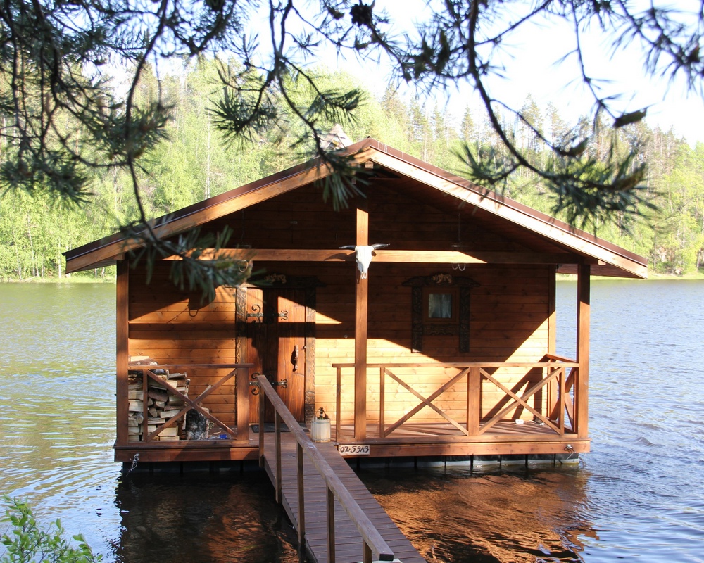 Это традиционная деревянная банька, вот только она стоит не на земле, а на воде – прямо на Ладожском озере. Это прекрасно – прямо из парилки нырнуть в прохладную воду Ладоги, вдоволь поплавать, потом снова вернуться в парилку или отдохнуть на террасе.