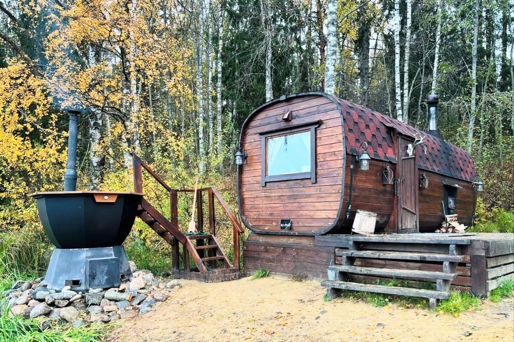 Семейные базы отдыха в Карелии летом – прекрасное решение для насыщенных и по-деревенски уютных выходных. Потому что вы сможете попариться в бане-бочке. Небольшая банька в форме бочки вмещает до 5 человек. В ней много пара, царит аромат дерева и веников, а в комнате отдыха есть все для спокойного расслабленного чаепития. Из парной можно сразу выйти и окунуться в Ладогу, ведь банька находится на берегу озера. Молодильный чан установлен и здесь – для тех, кто любит горячую воду на свежем воздухе. Попробуйте, вам понравится.