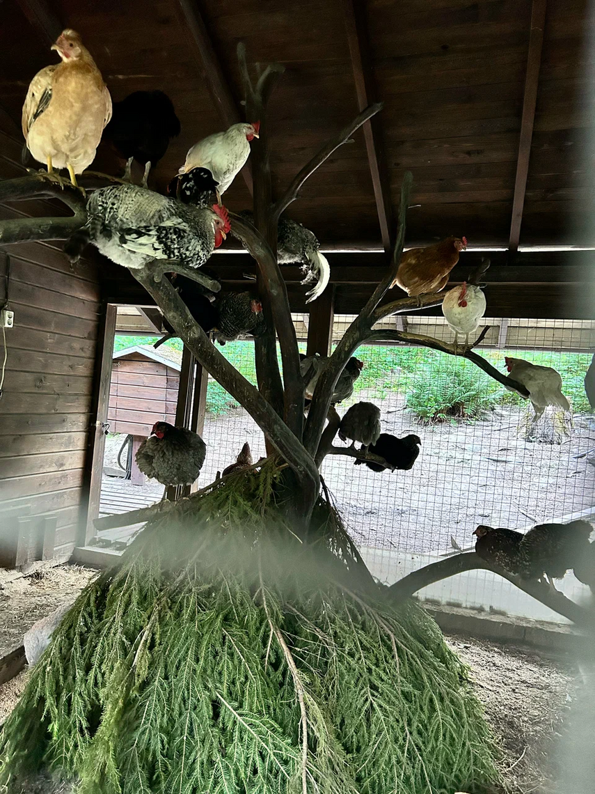Потрясающая уютная и красивая территория турбазы с небольшим хозяйством, где живут куры, гуси, цесарки, кролики и даже еноты. Как дети ходили их кормить.