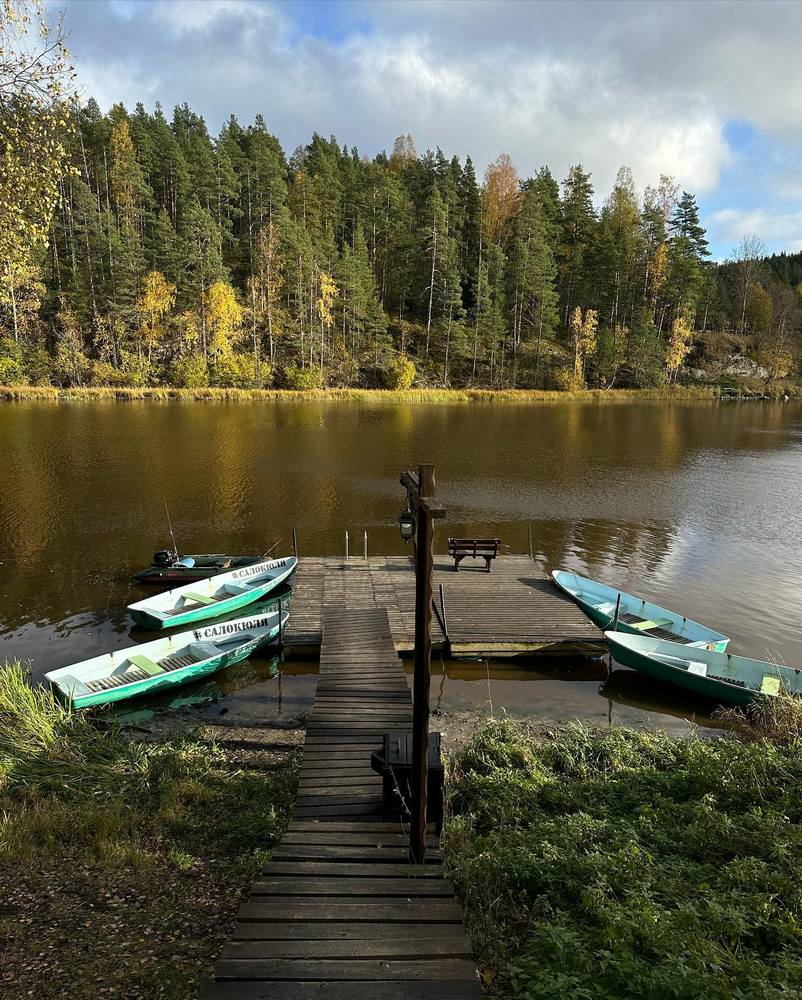 На турбазе теплые и уютные домики, большая ухоженная территория с курочками, кроликами и енотами. Совсем рядом Ладожские шхеры, на которые можно доплыть на моторной лодке.